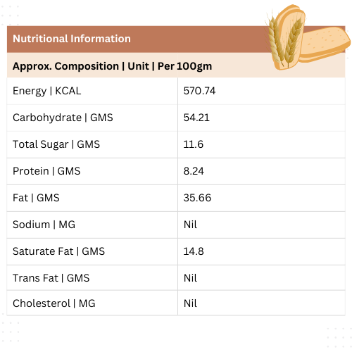 Baked to a perfect crunch, they are eggless and 100% vegetarian, making them suitable for all age groups. Light, crisp, and easy to digest, these atta biscuits pair perfectly with tea or coffee and are ideal for guilt-free daily snacking.